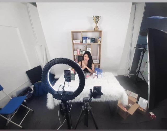 Nội thất ở trong phòng cũng đơn giản hơn rất nhiều. Chỉ cần một chiếc điện thoại hay máy tính có cài đặt mạng, một chiếc giá kê điện thoại, máy tính và mặt hàng để lên đơn cung có thể được xem là một phòng livestream bán hàng.
