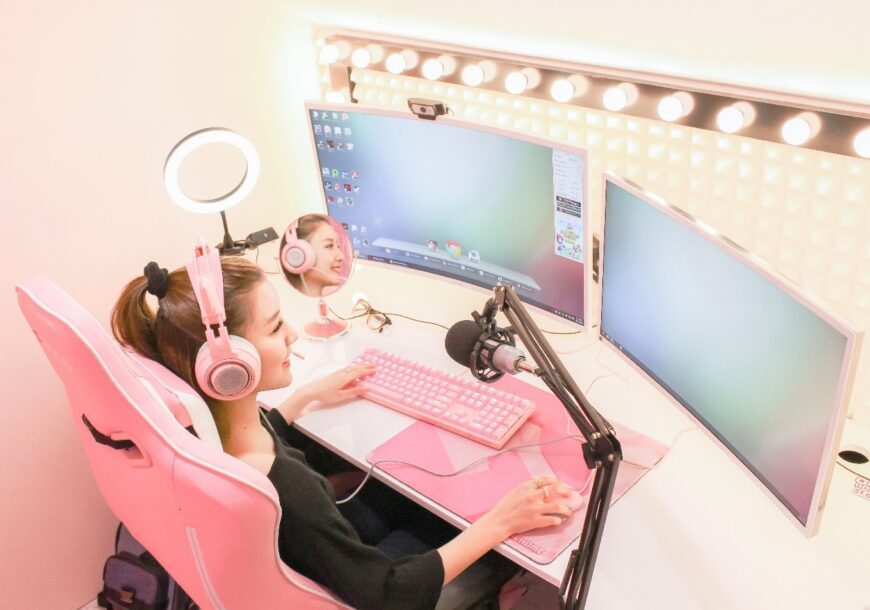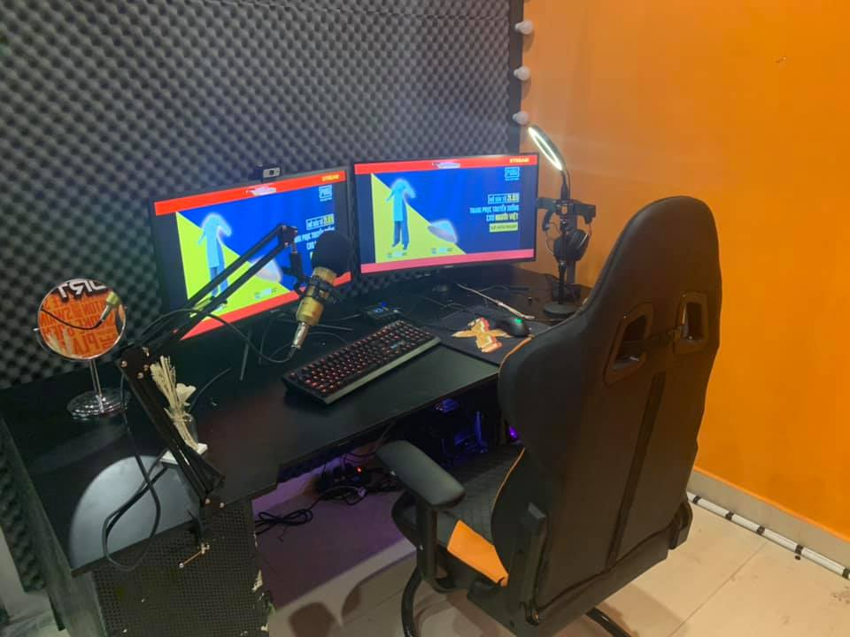Phòng livestream sẽ có thiết kế gần giống với phòng game. Có đầy đủ thiết bị như: máy tính, máy quay video, micro, headphone, loa,…