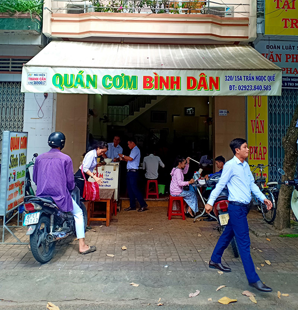 Quán cơm bình dân hay còn được gọi với tên quen thuộc là cơm bụi, cơm giá rẻ là dịch vụ ăn uống thường nhật có giá giao động trong khoảng từ 20.000 đến 35.000 đồng/suất.