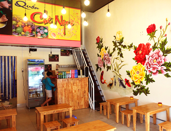 (Ảnh: Trang trí quán chè bằng giấy dán tường)