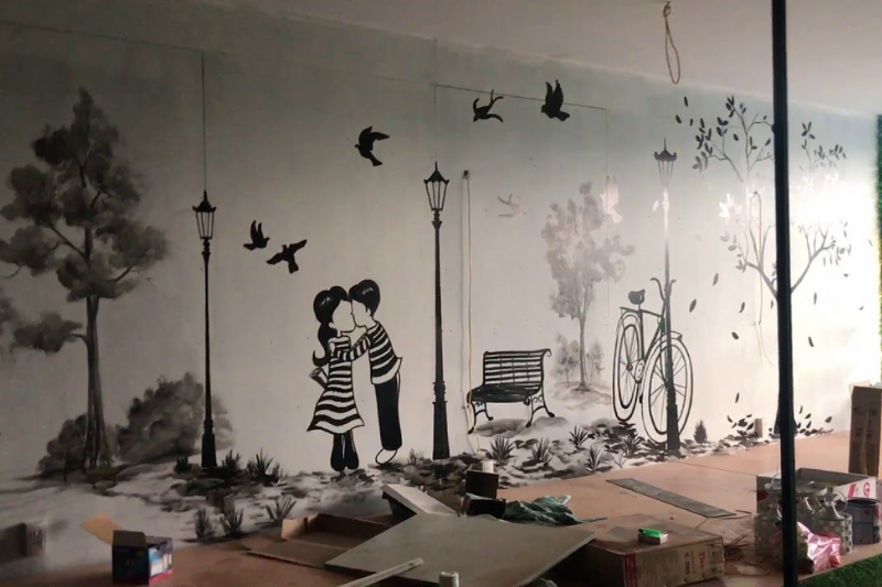 (Ảnh: Trang trí quán với tranh tường bạn có thể thỏa thích lựa chọn mẫu)