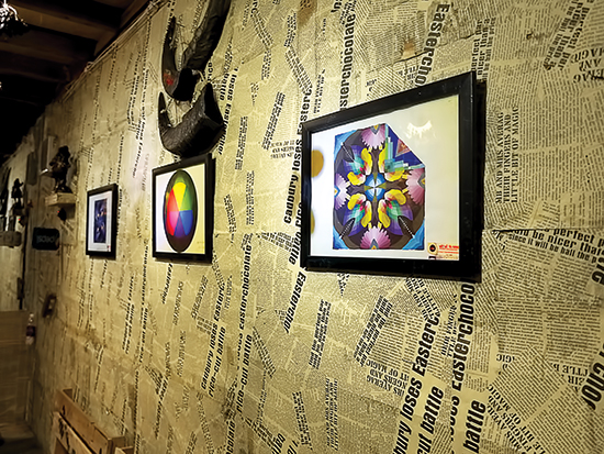 (Ảnh: Trang trí quán bằng những tờ báo tăng tính nghệ thuật)