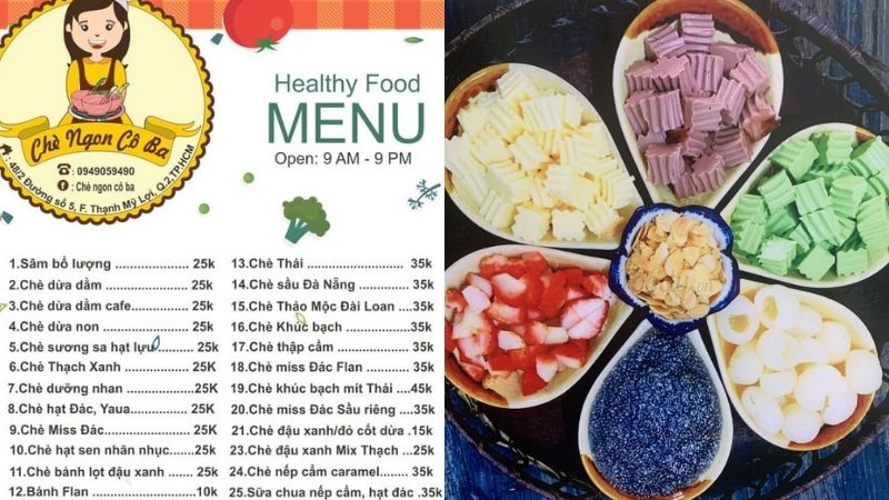 (Ảnh: Phân chia rõ ràng từng loại chè trong menu)