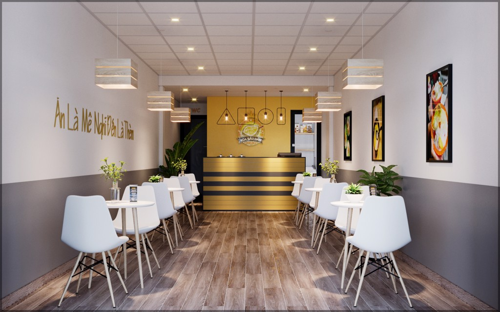 Theo tâm lý chung của người tiêu dùng, một quán ăn với không gian thoáng đãng sẽ ghi điểm hơn so với một quán ăn có không gian chật hẹp. Thiết kế quán không gian mở với cửa kính trong suốt sẽ tạo cảm giác thoải mái, dễ chịu, không bị gò bó.