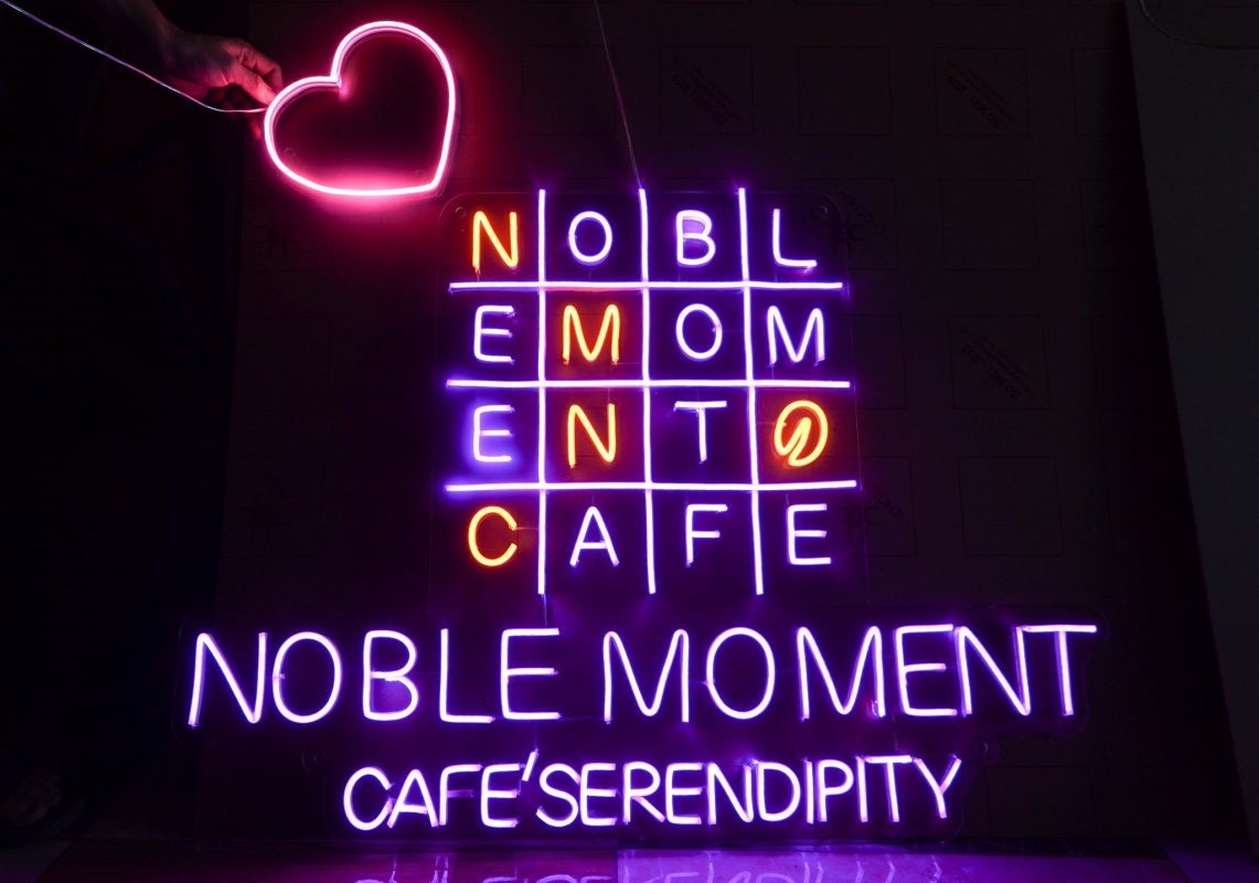 Ánh sách của đèn led với kiểu chữ cách điệu khiến tên quán của bạn trở nên sinh động và đầy phong cách.