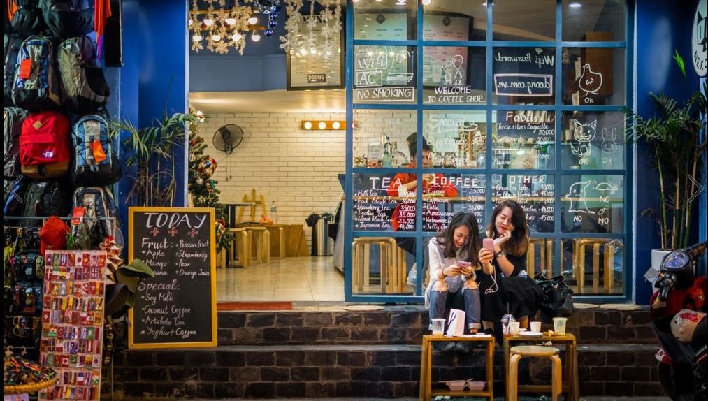 Khách hàng đến quán trà sữa để check in và tán gẫu.