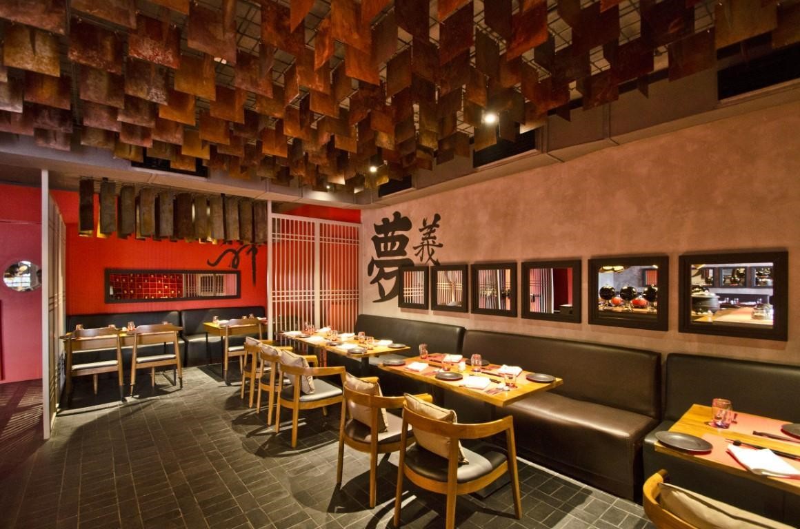Trung Quốc nổi tiếng với những khu phố đèn lồng và sắc màu rực rỡ. Dựa vào đó mà các nhà hàng hiện nay đang tái hiện lại hình ảnh của một nền văn hóa cổ xưa qua cách bố trí những đèn lồng, đèn thả trần.