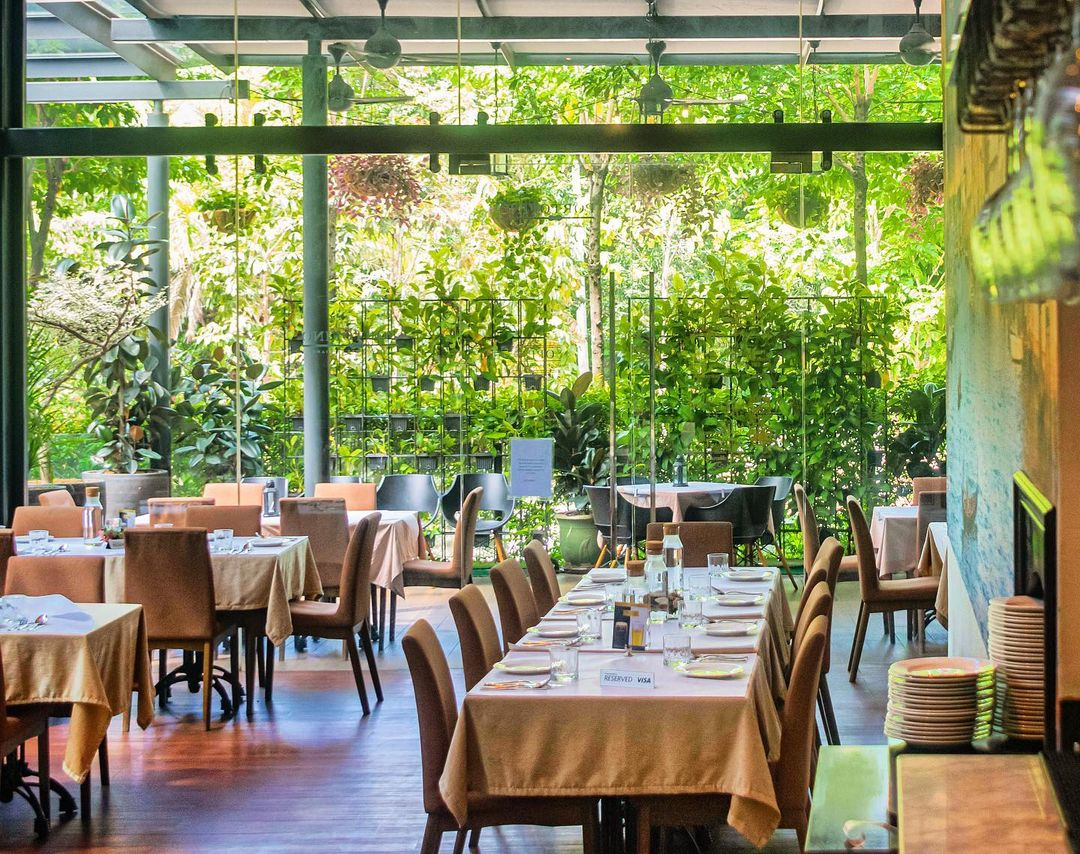 Đối với nhà hàng có không gian rộng thì nên được che mát bởi những tán cây lớn để tạo một khoảng không gian xanh bao trùm. Đối với nhà hàng có không gian hạn chế, nên lựa chọn những cây gọn để tiết kiệm diện tích cũng như tránh vướng vào người khách.
