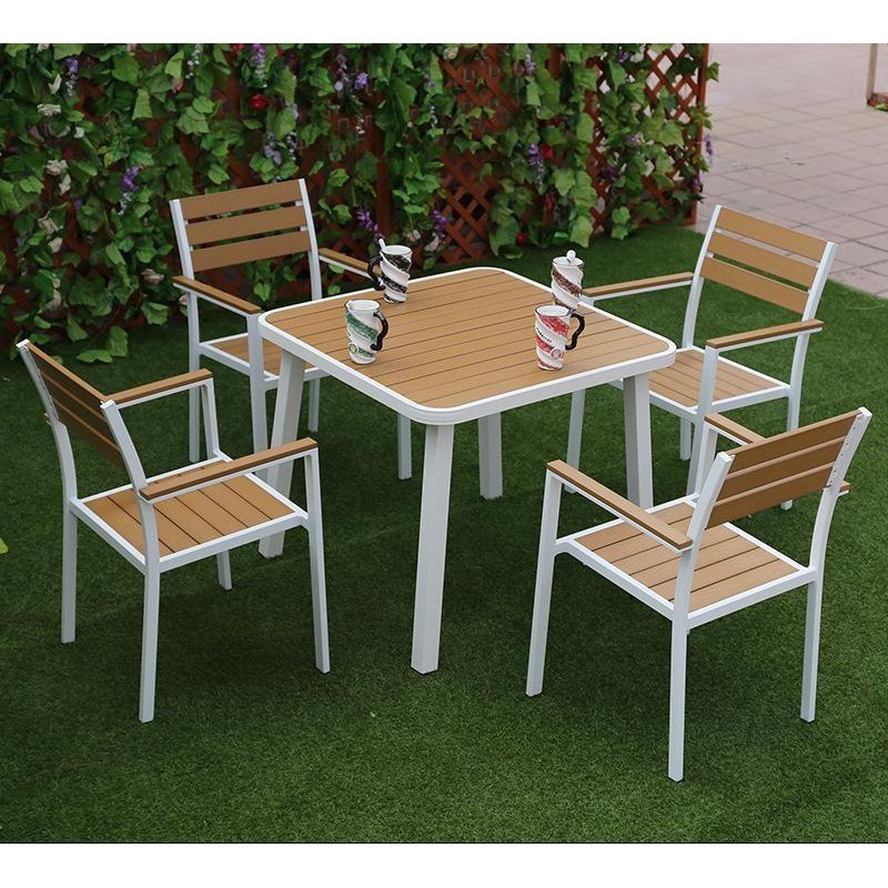 Mẫu bàn ghế nhựa giả gỗ thông dụng hiện nay.