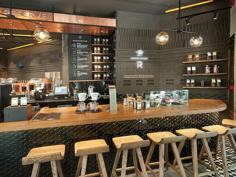 Bàn ghế quầy bar trong các quán cafe hiện nay thường có màu vàng nâu vân gỗ để mang đến cảm giác sang trọng và đẳng cấp.