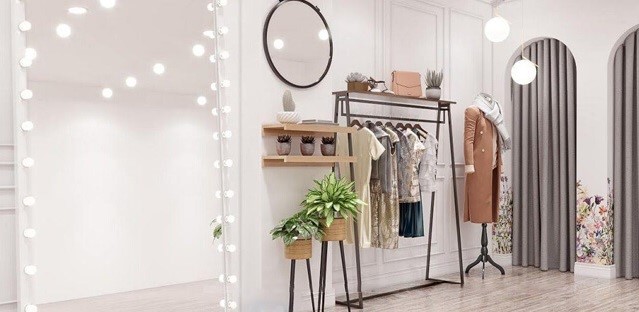 Có thể sử dụng giấy dán tường, các loại vải, họa tiết để làm nổi bật không gian showroom.