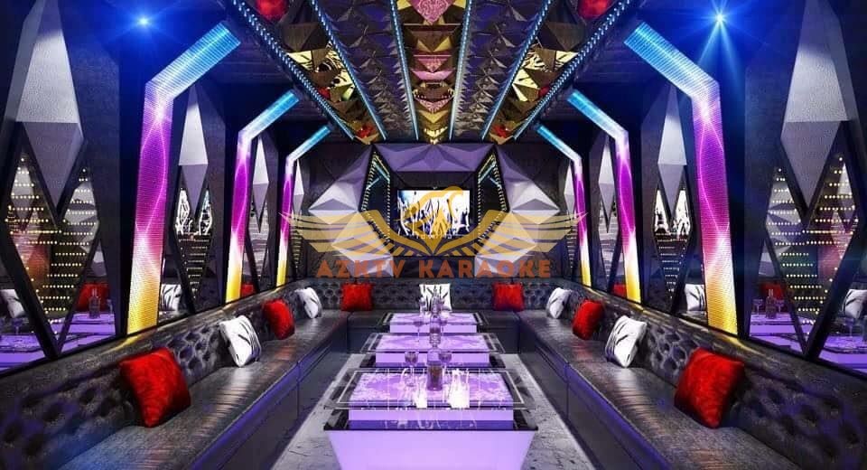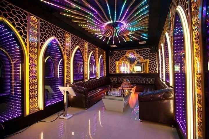 Hệ thống đèn điện trong phòng hát cần bố trí một cách hợp lý, nên đặt ở hai bên tường, trên trần và bên dưới.