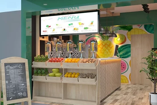 Nước ép trái cây là mặt hàng kinh doanh cần có sự đảm bảo độ tươi ngon cao nên bạn cần có nguồn nhập thực phẩm chất lượng và hệ thống làm mát, bảo quản thực phẩm đông lạnh tốt. Quầy đựng và bảo quản hoa quả nên để ở nơi dễ thấy nhất để tạo sự tin tưởng của khách hàng đối với chất lượng sản phẩm của quán.