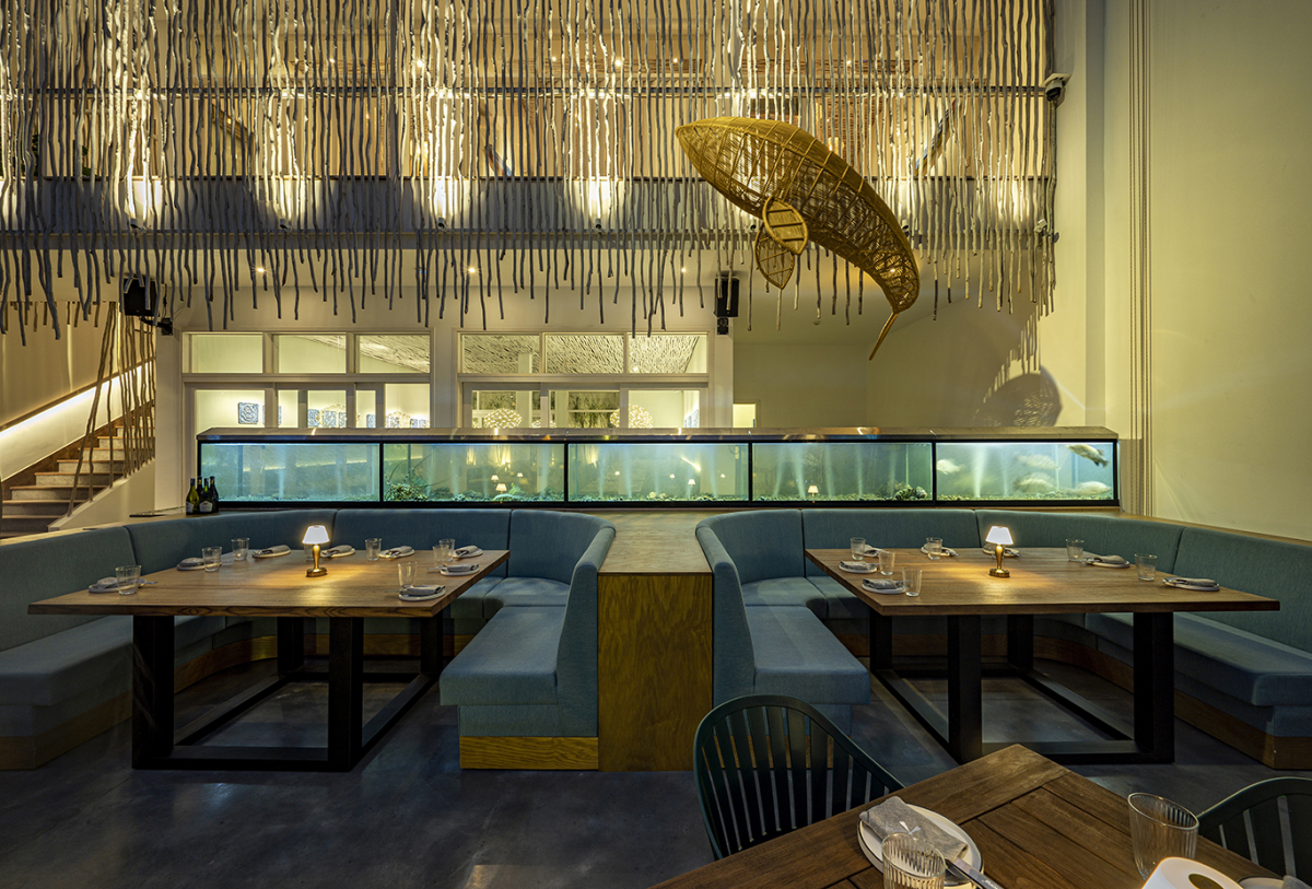 Thiết kế nhà hàng hải sản lấy màu xanh biển làm chủ đạo