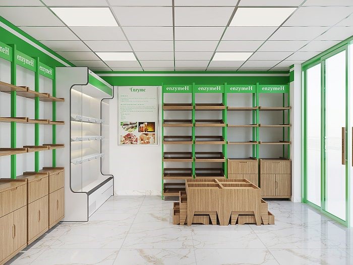 Trưng bày sản phẩm theo cách này khiến hàng hóa của bạn được sắp xếp một cách sáng tạo, tận dụng triệt để diện tích không gian trưng bày mà không bị rối mắt.