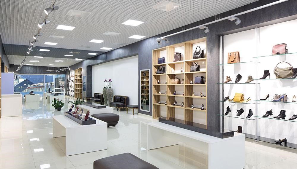 Mẫu thiết kế phòng trưng bày sản phẩm túi xách, giày dép thời trang.